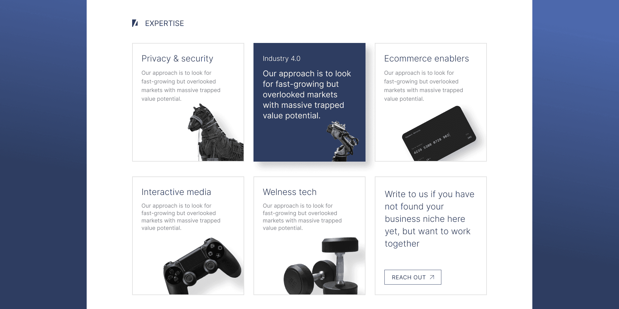 To add trustworthiness to the look, we used muted blue color and grotesk typography. Main contrasts happen between text blocks to show transparency of approach without distractions.