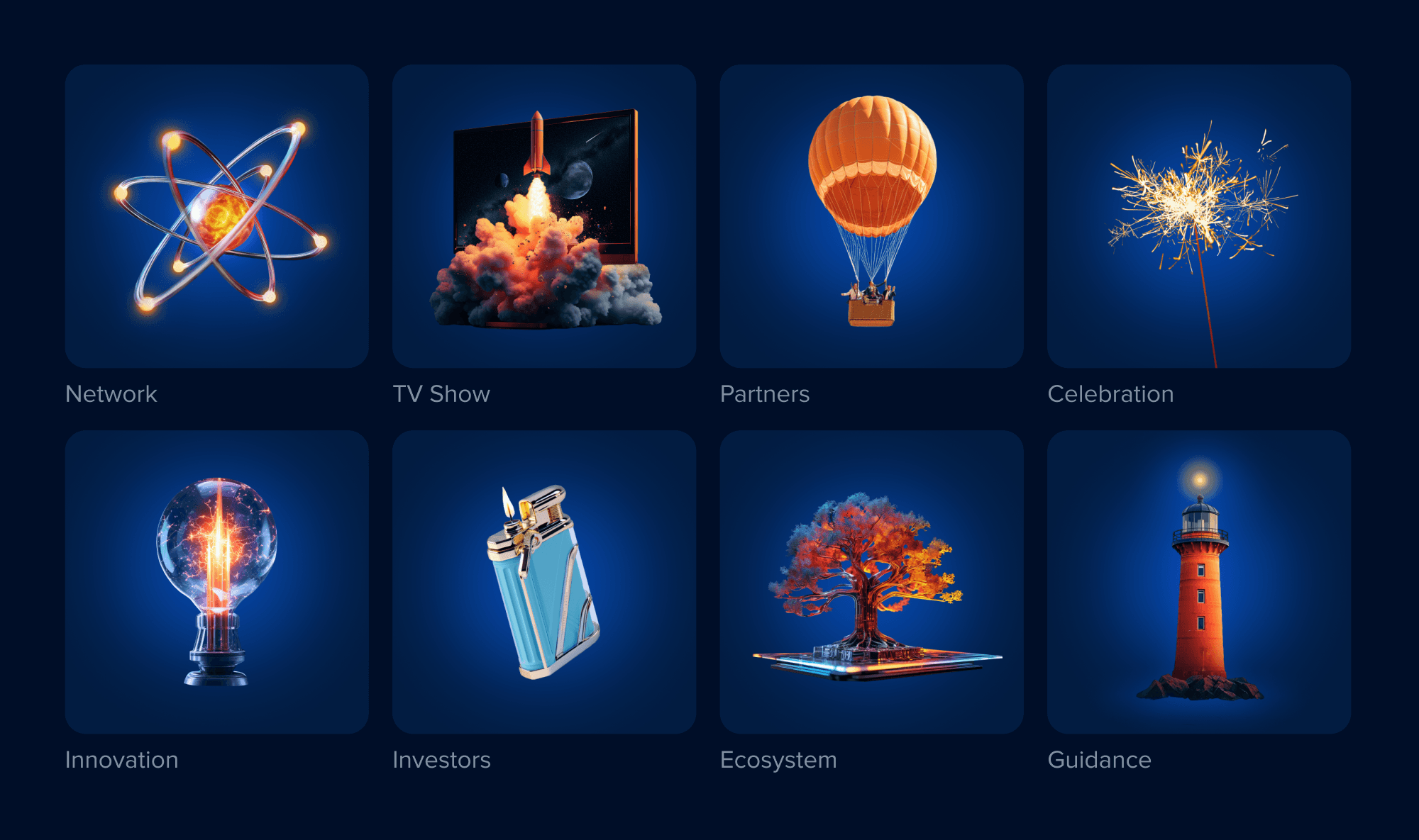 Collection of branding visuals for the startup accelerator Zünder from Lucerne. Generated with the help of Midjourney and adjusted in other programs.
